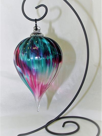 Choose your ornament color and design from our examples and use our "no-blowing" method to create an ornament with John, who does the steps which require experience.